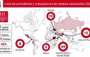 Ciento once periodistas, entre ellxs siete mujeres, fueron asesinadxs en 2025, según el informe anual de la Federación… Leer más